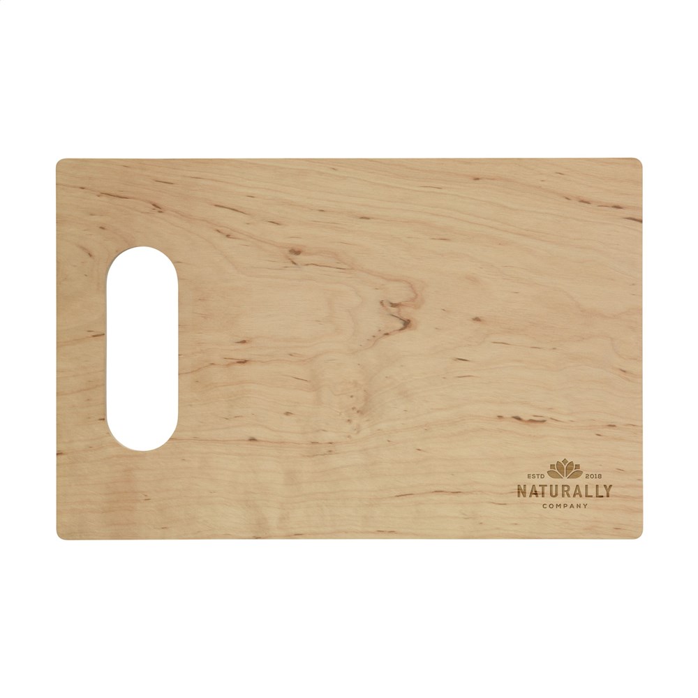 Bæredygtigt skærebræt lavet af elletræ fra EU. Fremstillet af ét stykke træ, uden lim. Brættet har et åbent håndtag og kan også bruges som snackbræt. Ideel til at hakke og præsentere mad. Elletræ har en jævn struktur. De lysegule og røde toner og subtile, tætte knaster, som man sommetider ser, giver dette træ en unik karakter. Made in Croatia.