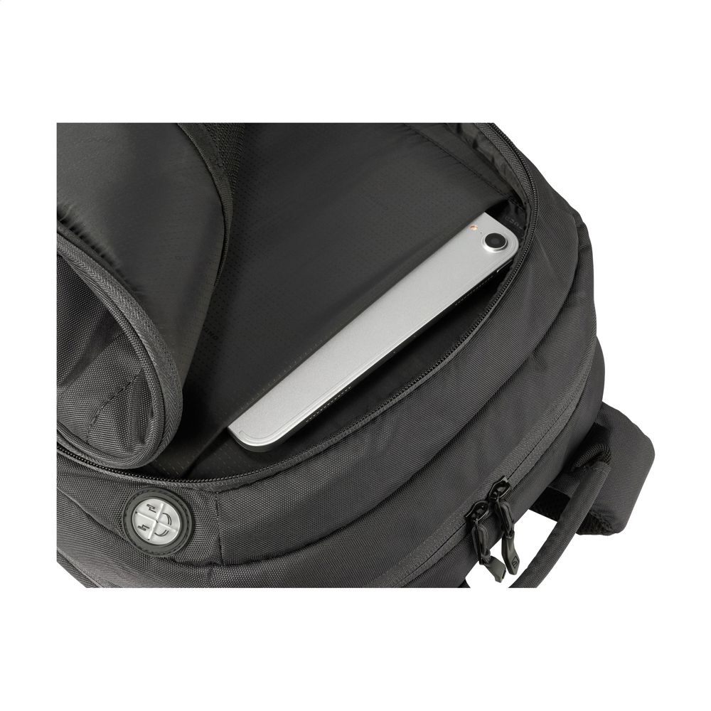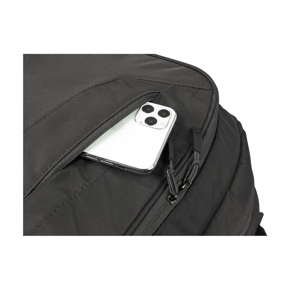 En alsidig, letvægts laptoprygsæk fra det italienske mærke Tucano. Fremstillet af materialer produceret af genbrugsplast, herunder 22 PET-flasker. Det største rum har et stødbestandigt opbevaringsrum til en bærbar computer på op til 17» eller MacBook Pro 16« og en lynlåslomme i net. Det mindre rum har et stødbeskyttet opbevaringsrum til en tablet, to netlommer til tilbehør og en kabelport. Med lynlåslomme foran, elastiske sidelommer til en drikkedunk og paraply og en praktisk trolleyrem. Den komfortable håndtag, de justerbare, polstrede skulderstropper og den ergonomiske rygsiden sikrer ekstra bærekomfort. En ideel rygsæk med smart indretning og masser af opbevaringsplads. Fuldt foret. Kapacitet ca. 30 liter.
