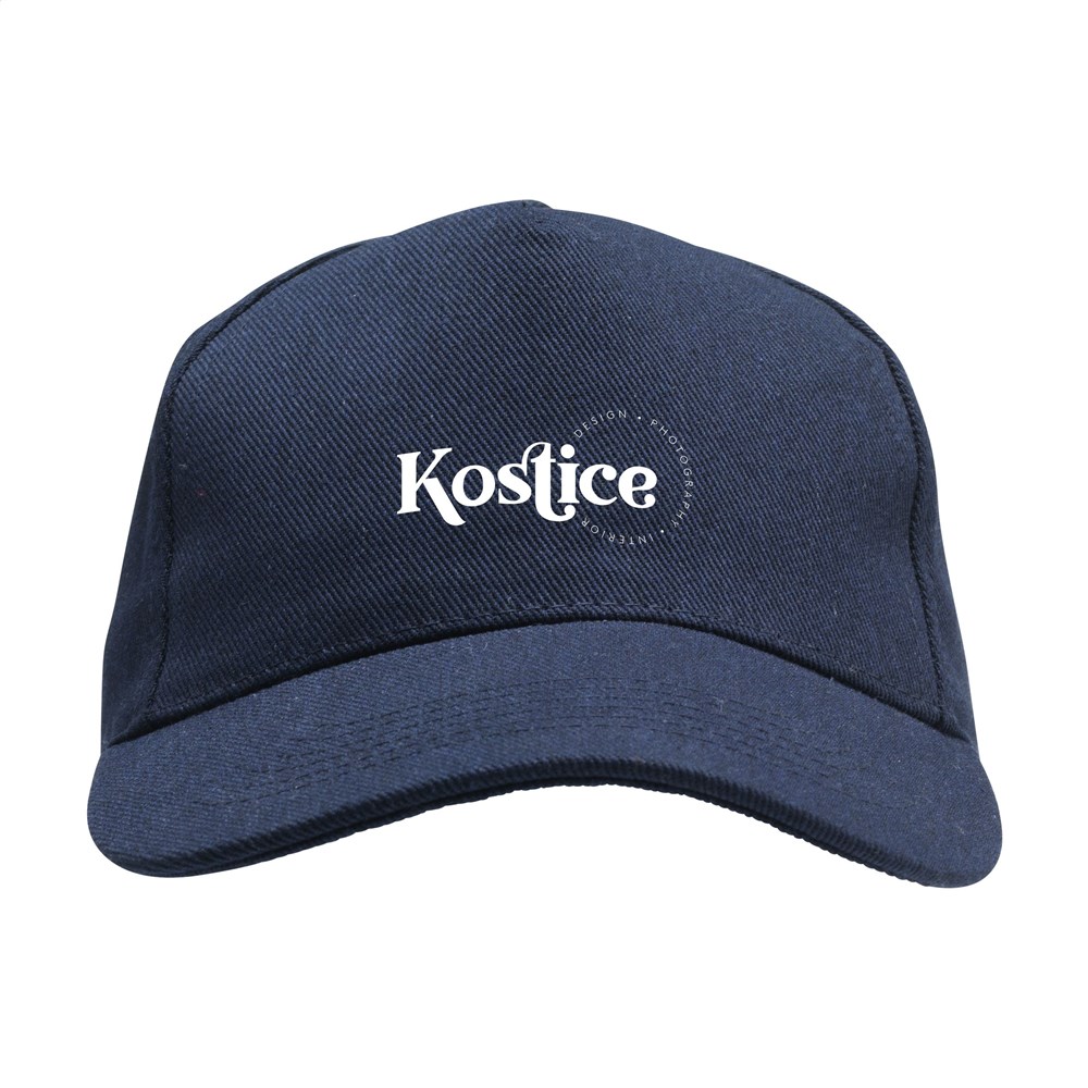 Komfortabel kasket lavet af ekstra kraftigt kvalitetsgenbrugsmateriale: 60% genbrugsbomuld og 40% genbrugspolyester. Denne 5-panelskasket har et buet visir og broderede ventilationshuller, en præformet puld samt en justerbar metalclipslukning bagpå.
